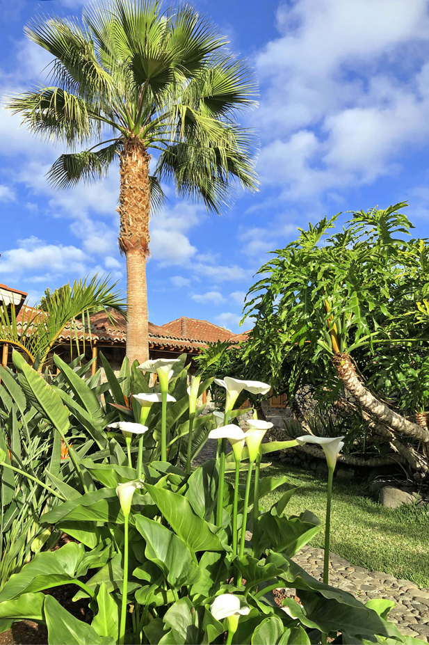 Ein Spaziergang über die Finca Lomo Felipe bietet eine Fülle von Eindrücken: die Formenvielfalt im Kaktus- und Palmengarten, exotischen Früchte im Obstgarten, der Gemüsegarten mit antikem Wasserspeicher, ein Mandelhain, der sich im Frühjahr in ein blühendes Märchenland verwandelt, hoch aufragende Kiefern und eine unberührte Naturlandschaft mit Sukkulenten und Wolfsmilchgewächsen aller Art.