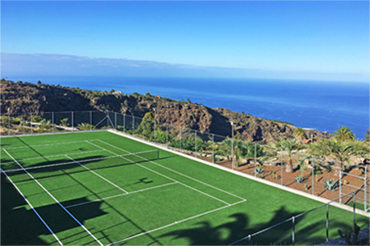 Der großzügig angelegte Tennisplatz mit gesandetem Kunstrasen ist turniertauglich und sowohl für Einzel als auch für Doppel geeignet. Mit Flutlicht kann hier gerne auch am Abend noch unter funkelnden Sternenhimmel gespielt werden.
